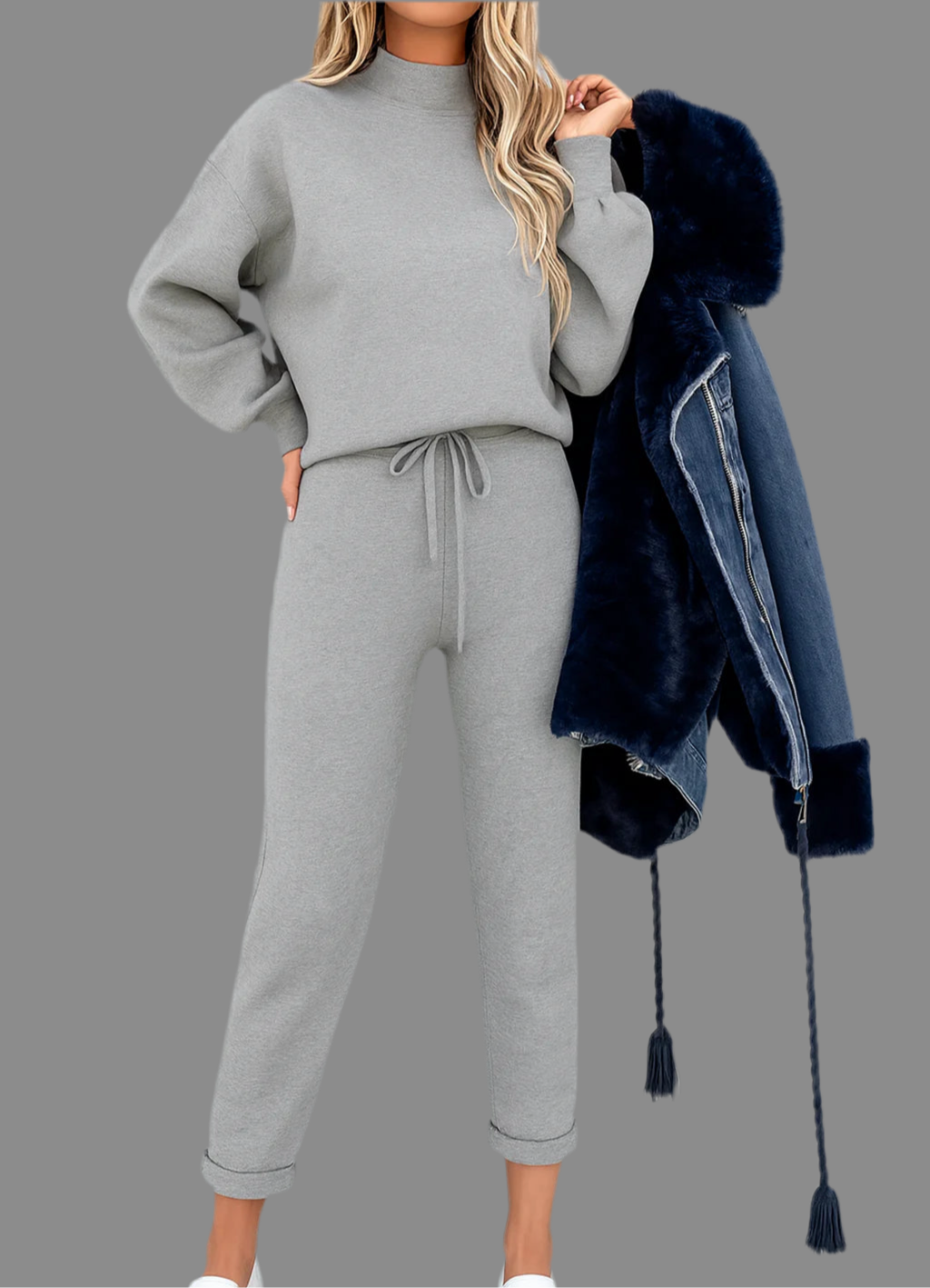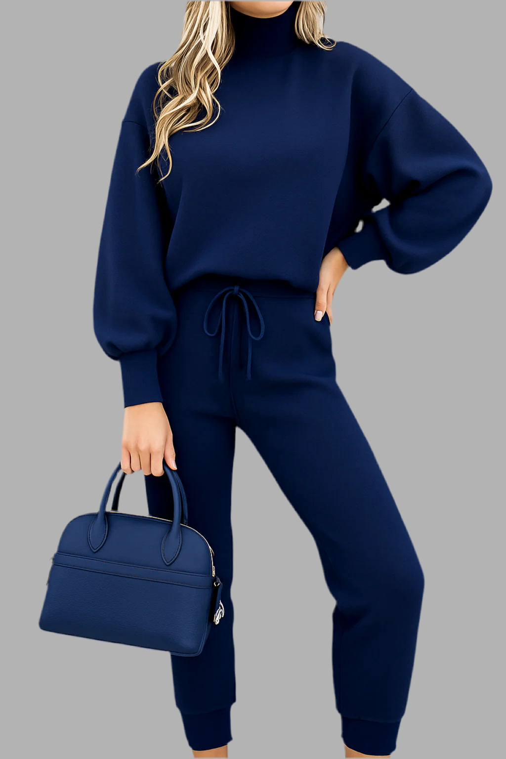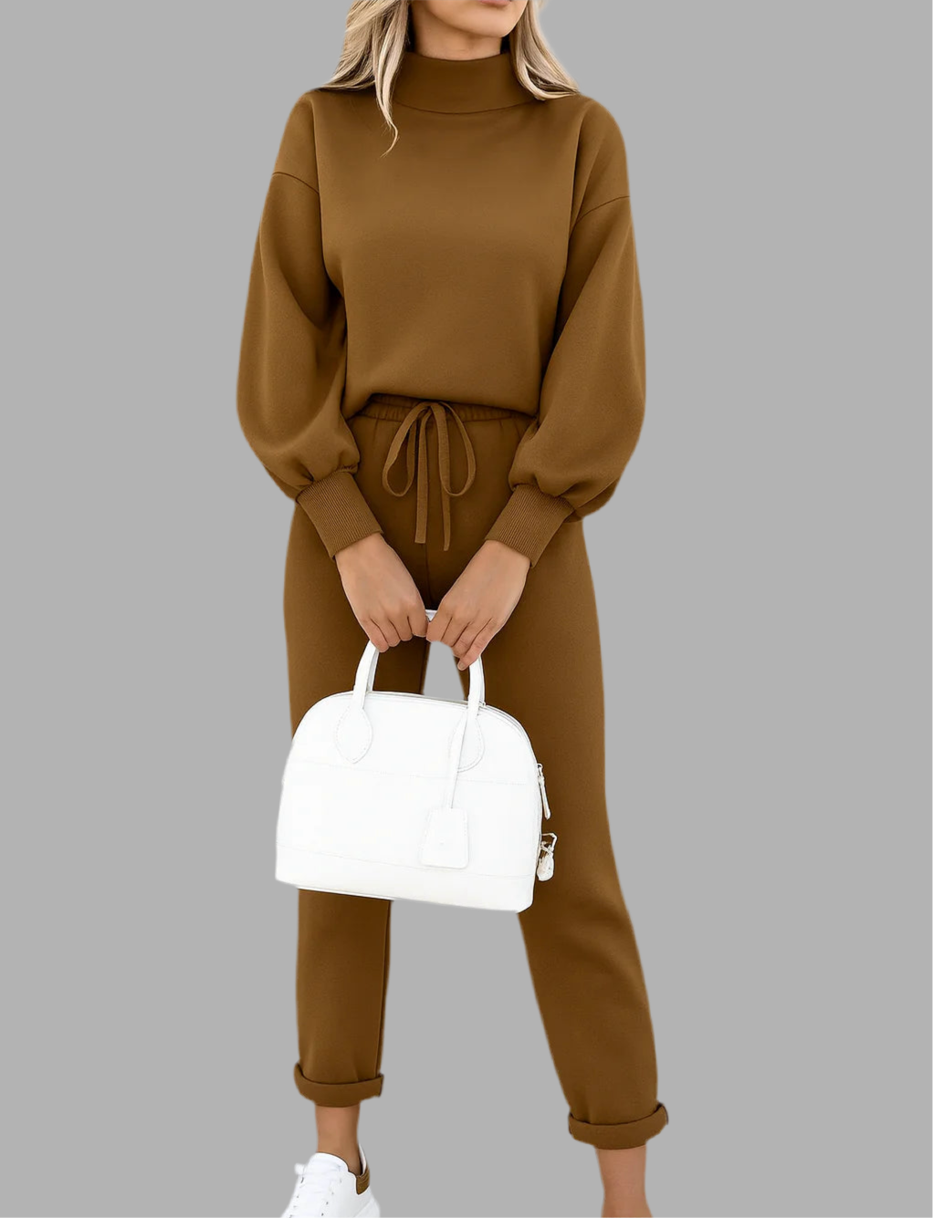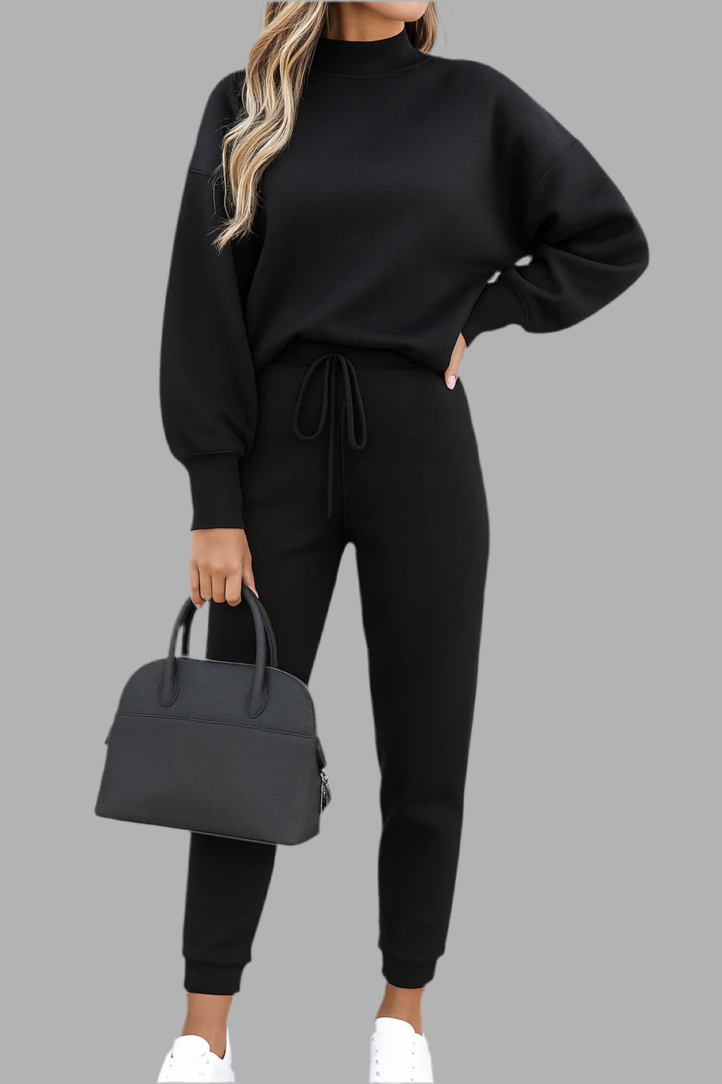 Deze dames set bestaat uit een trui met lange mouwen en een bijpassende broek in een recht model. De trui heeft een ronde hals en een losse pasvorm, terwijl de broek is uitgevoerd met een elastische tailleband en strakkere boorden aan de enkels. Het zachte materiaal voelt comfortabel aan en maakt de set geschikt voor dagelijks gebruik. Het eenvoudige ontwerp zorgt voor een veelzijdige en moderne uitstraling.