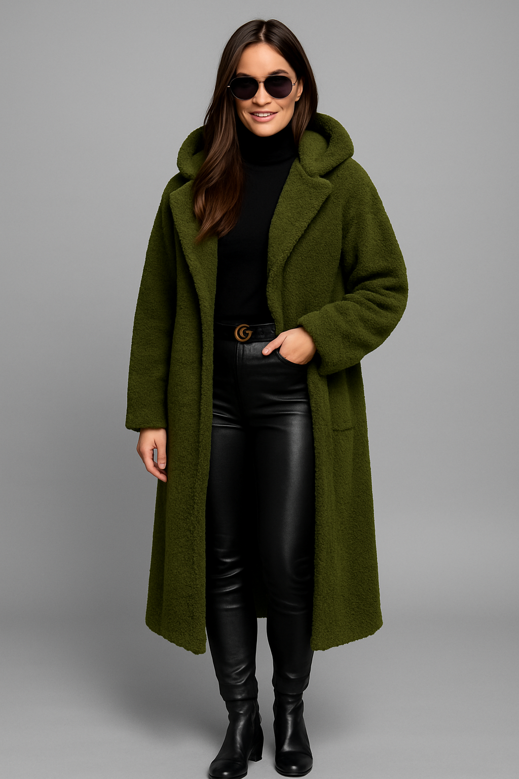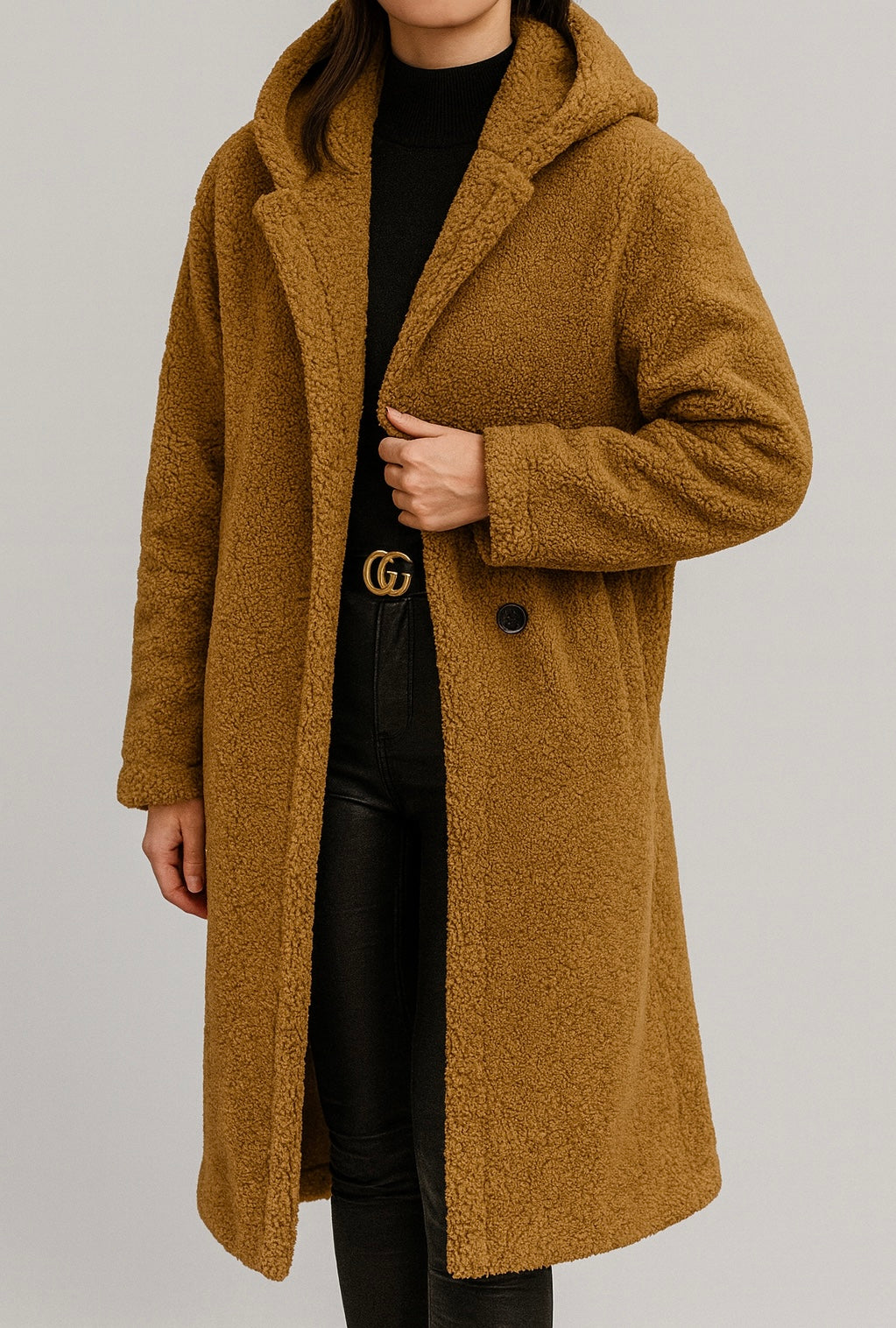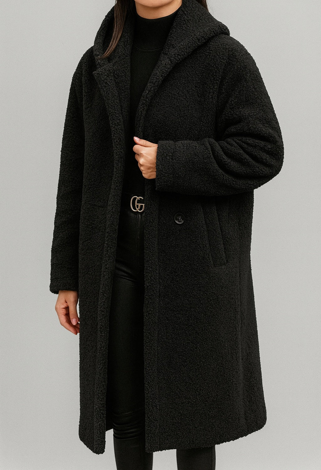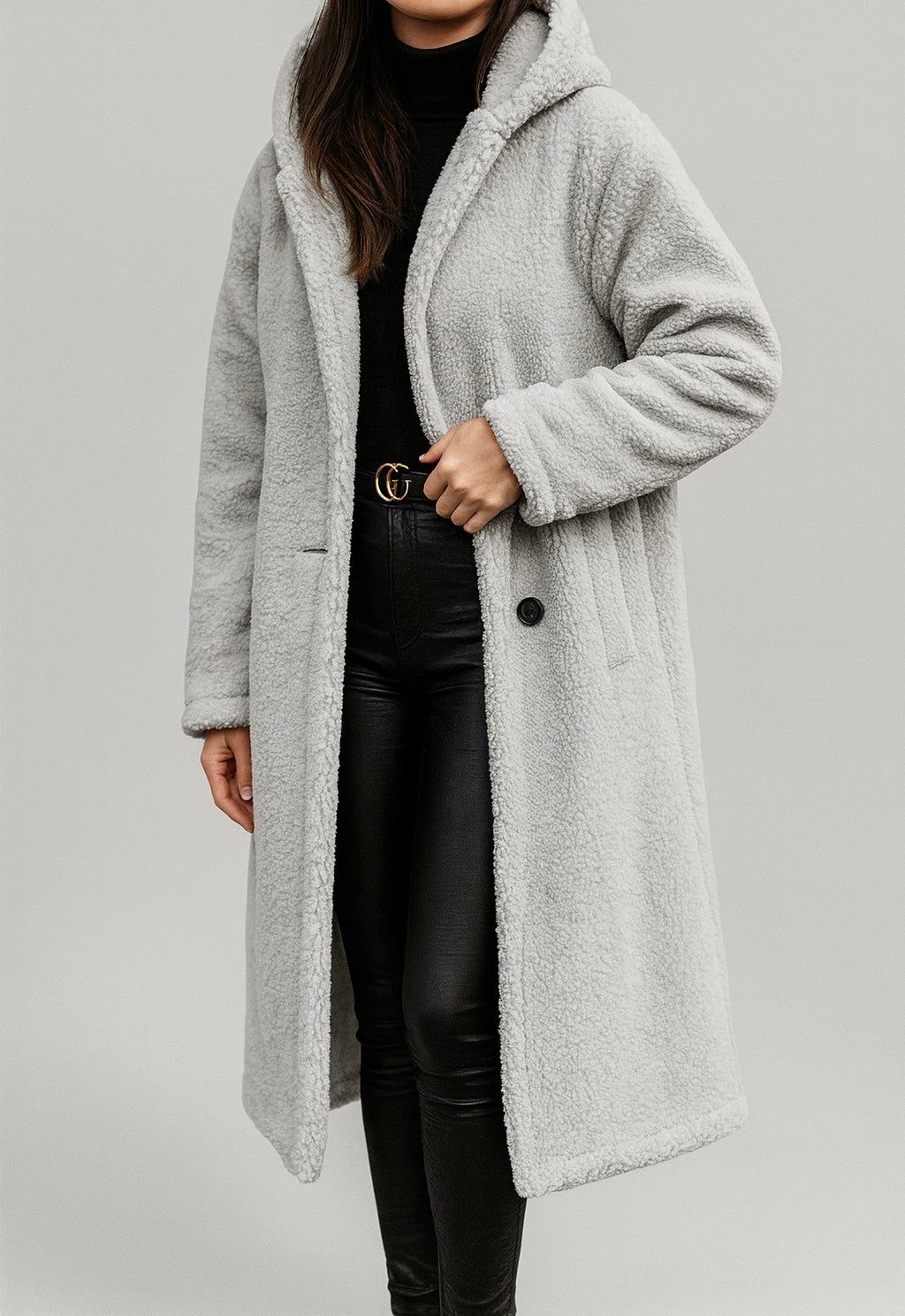 Damesjas met lange snit en knoopsluiting