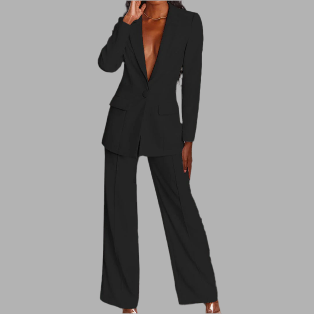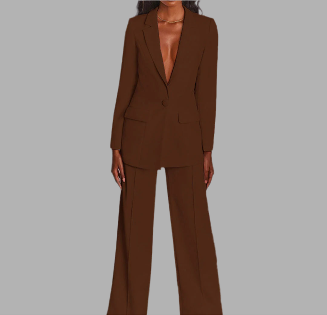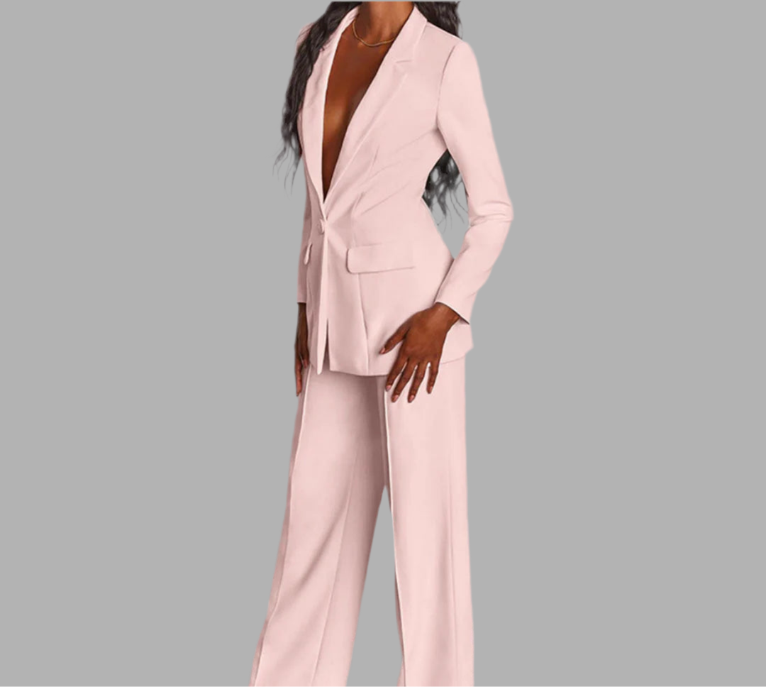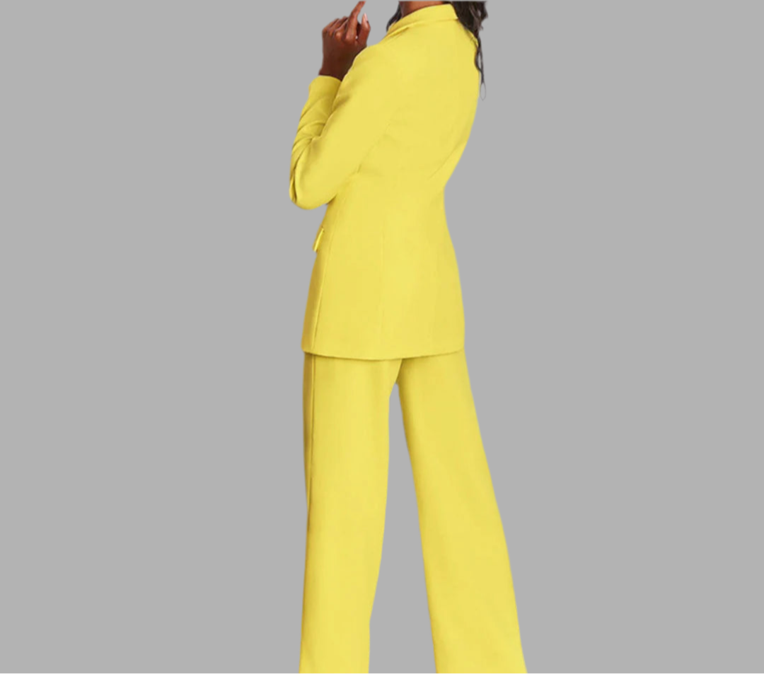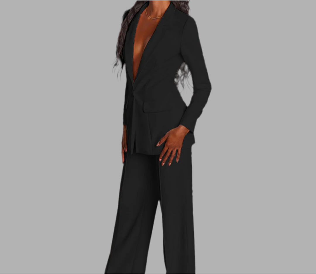 Damespak met colbert en wijde broek