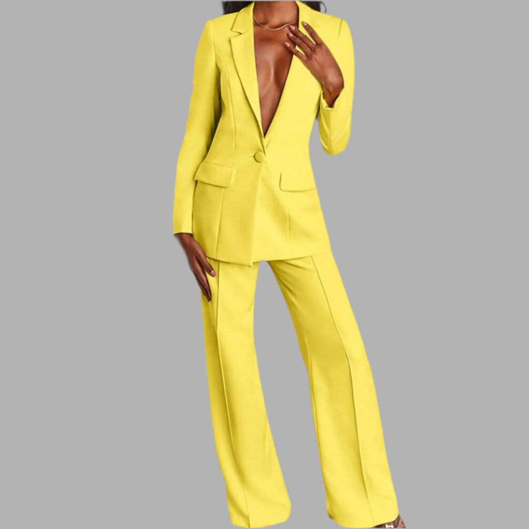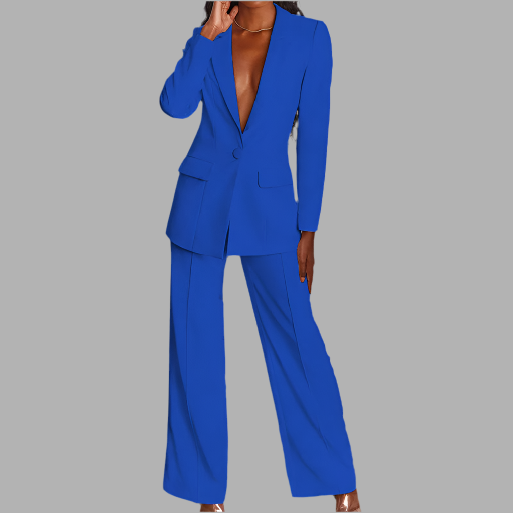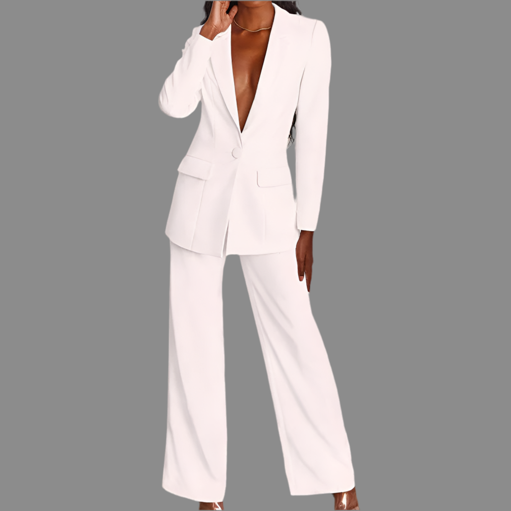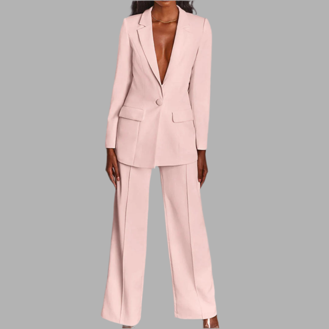 Damespak met colbert en wijde broek