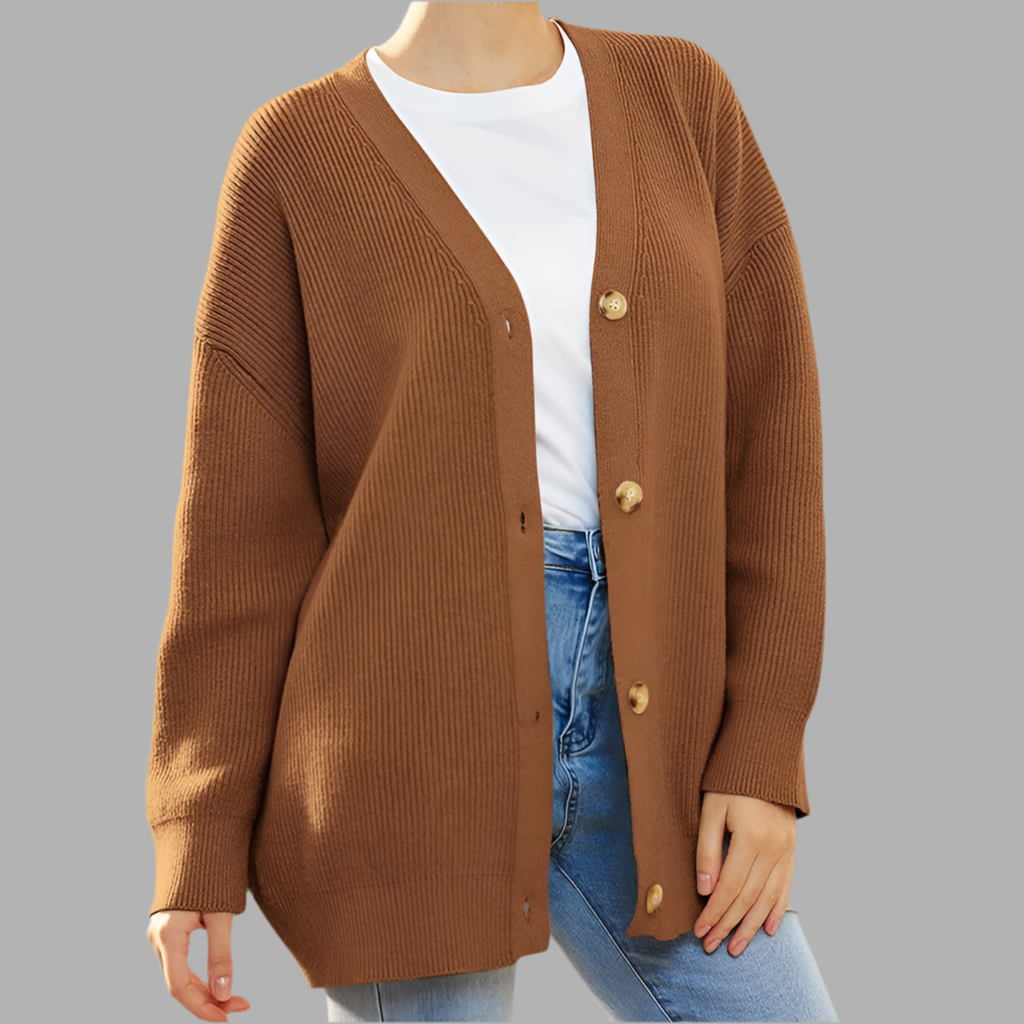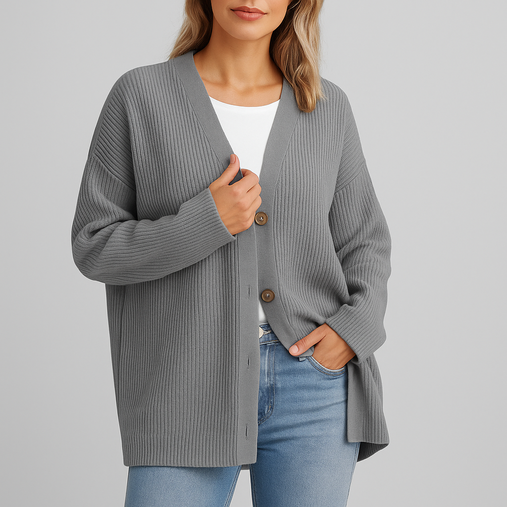 Dit vest is ontworpen in een losvallend model en sluit aan de voorkant met knopen. De geribde boorden bij de mouwen en zoom zorgen voor een nette afwerking en een comfortabele pasvorm. Het eenvoudige ontwerp maakt het gemakkelijk te combineren met verschillende outfits. Dankzij de zachte stof draagt het vest aangenaam en biedt het extra warmte.