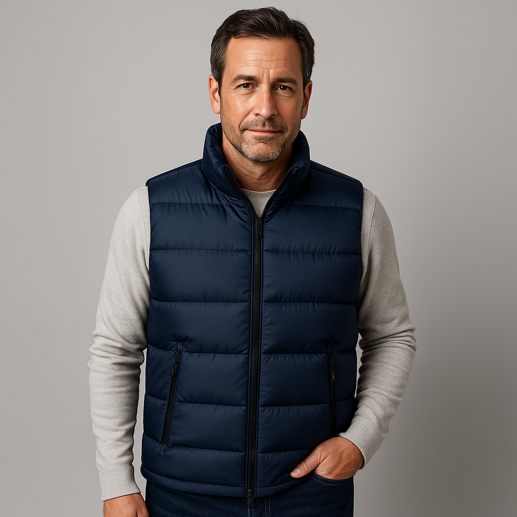Dit gewatteerde bodywarmer heeft een recht model en is voorzien van een doorlopende ritssluiting. De hoge kraag biedt extra bescherming tegen wind, terwijl de zijzakken ruimte geven voor kleine voorwerpen. Het eenvoudige ontwerp maakt het gemakkelijk om met verschillende stijlen te combineren. De pasvorm zorgt voor draagcomfort en voldoende bewegingsvrijheid.
