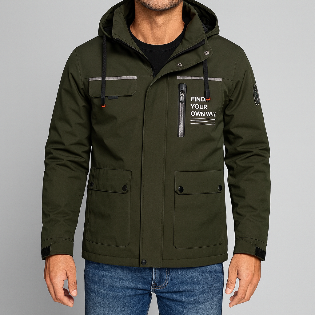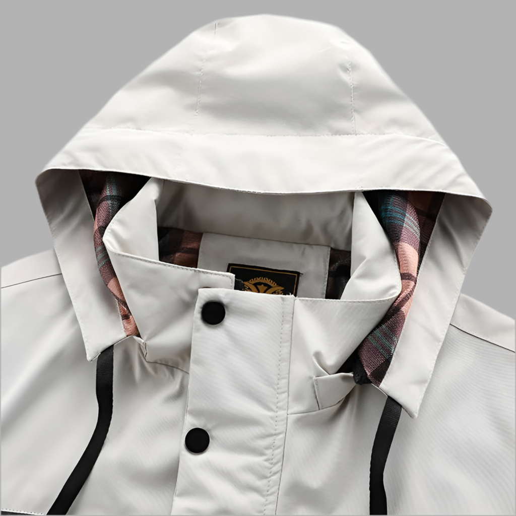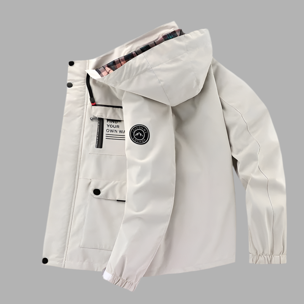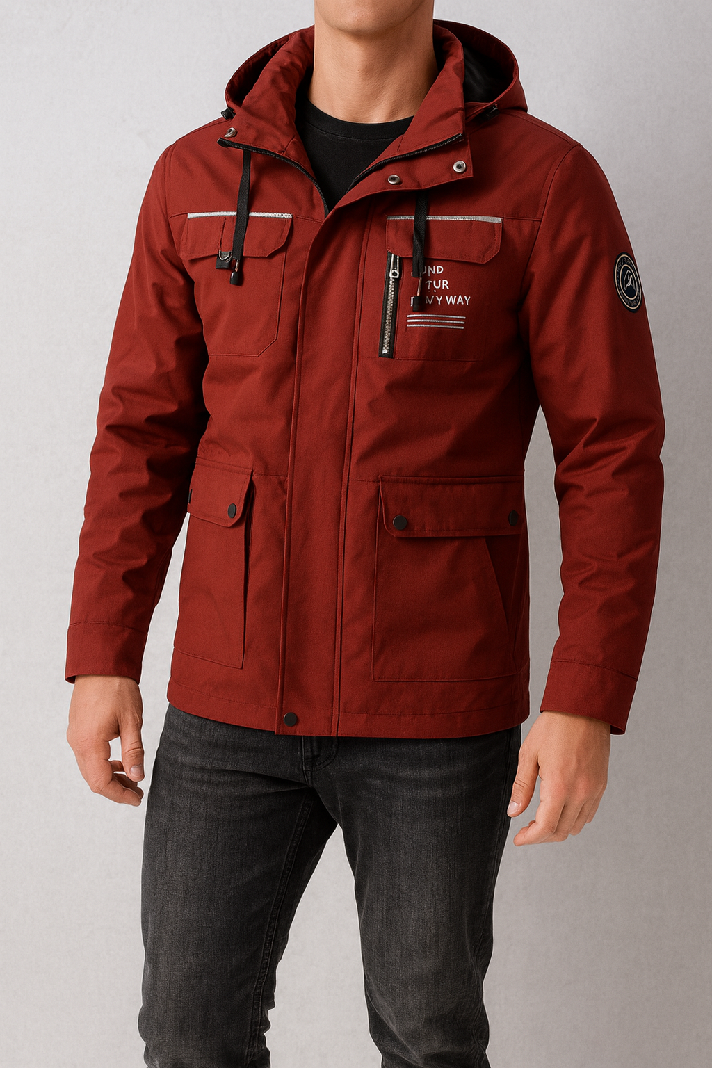 Deze jas heeft een recht model en is voorzien van een ritssluiting met extra knoopsluiting aan de voorkant. De capuchon is verstelbaar en de jas beschikt over meerdere zakken die bijdragen aan de functionele uitstraling. Het ontwerp heeft een sportief karakter en blijft door de nette afwerking veelzijdig draagbaar.
