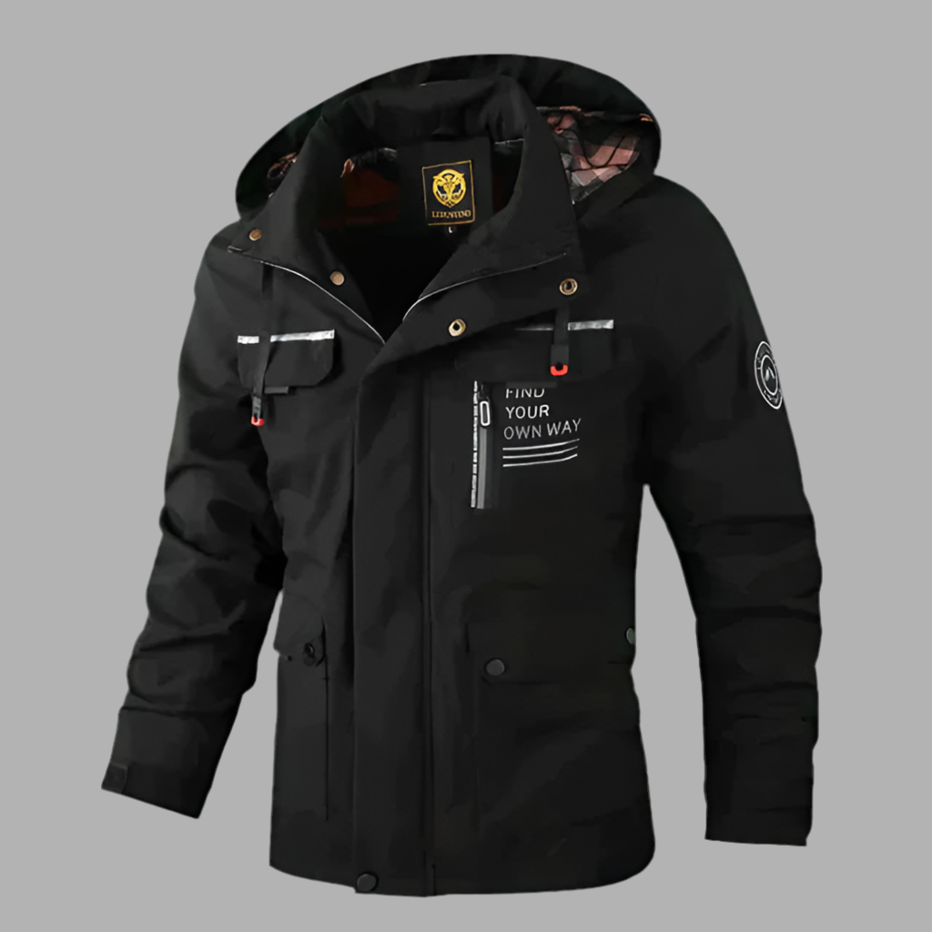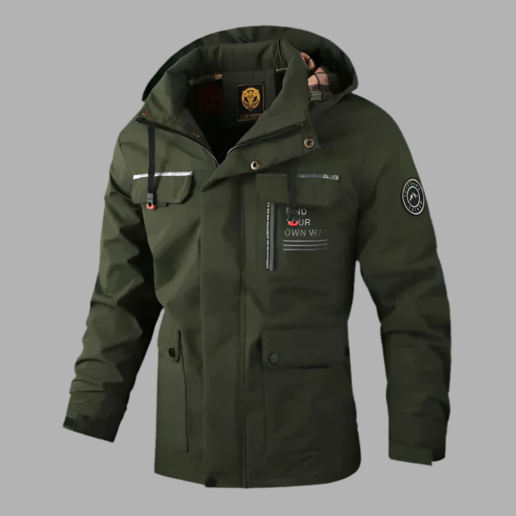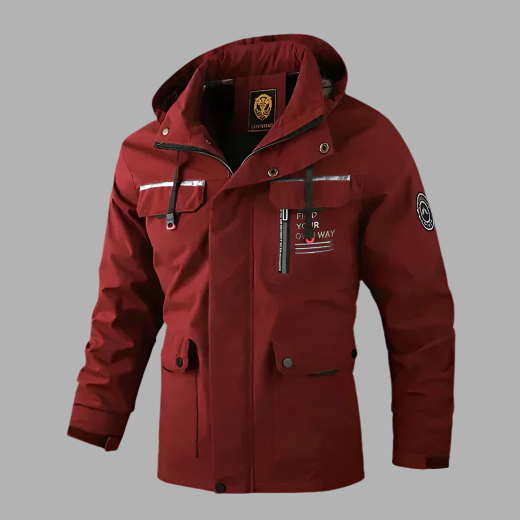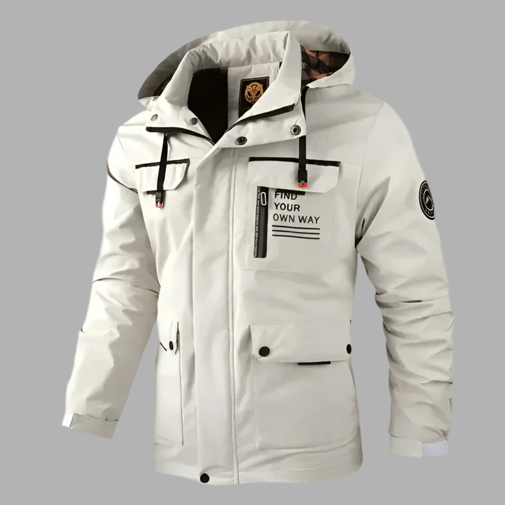 Deze jas heeft een recht model en is voorzien van een ritssluiting met extra knoopsluiting aan de voorkant. De capuchon is verstelbaar en de jas beschikt over meerdere zakken die bijdragen aan de functionele uitstraling. Het ontwerp heeft een sportief karakter en blijft door de nette afwerking veelzijdig draagbaar.