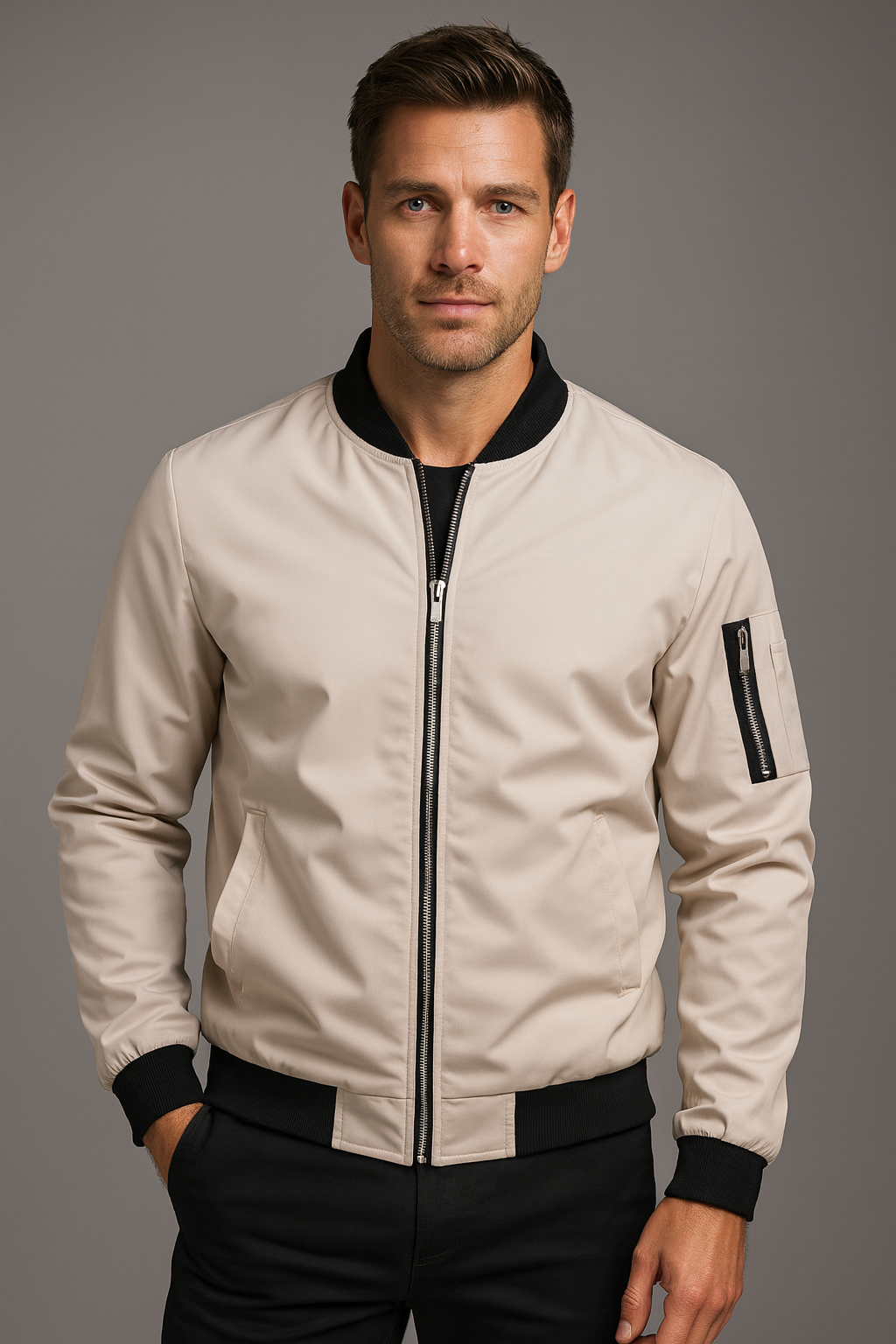 Herens bomberjack met ritssluiting en zakdetails