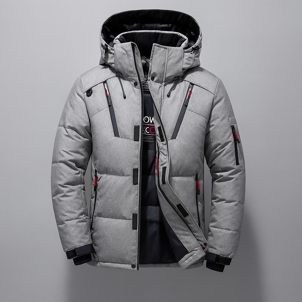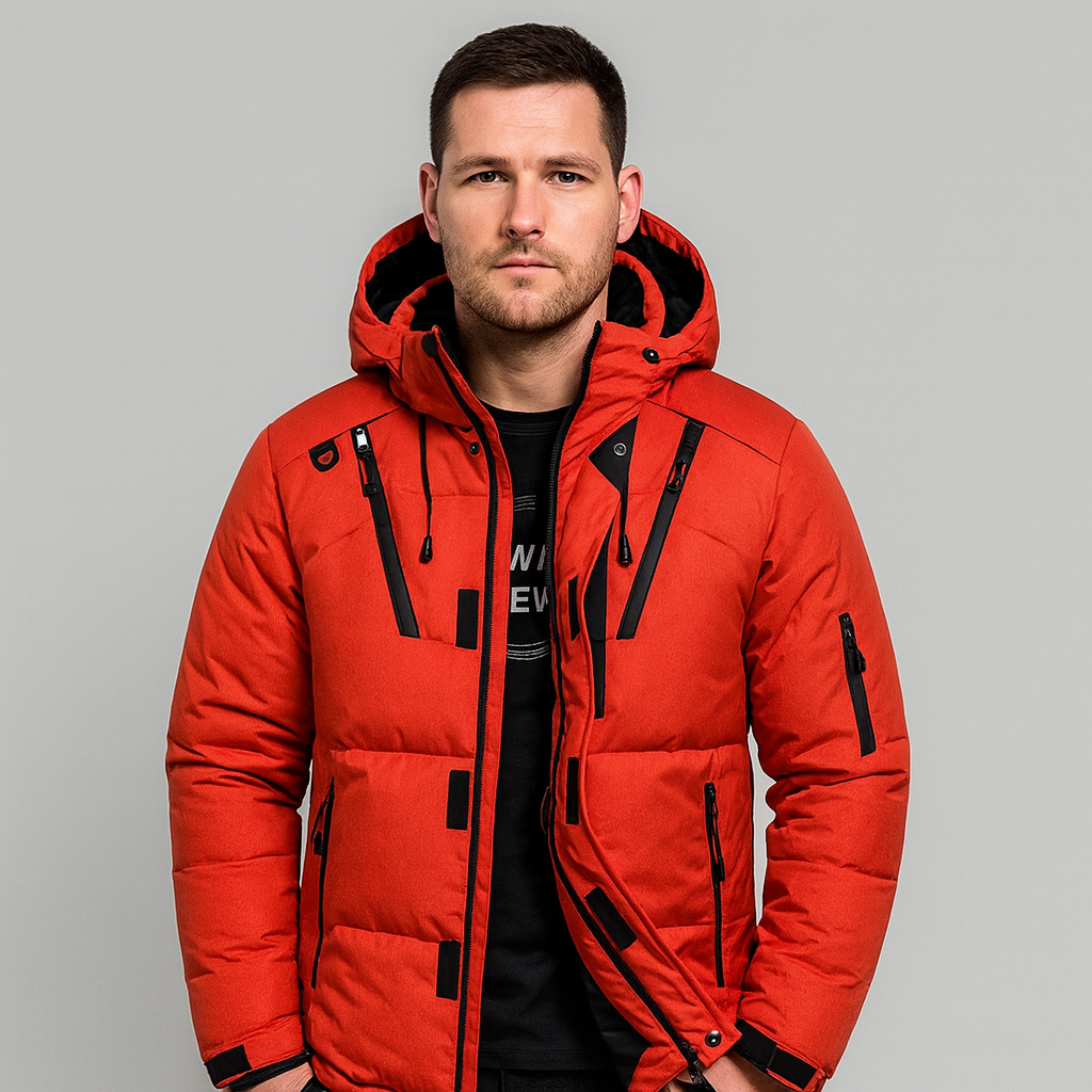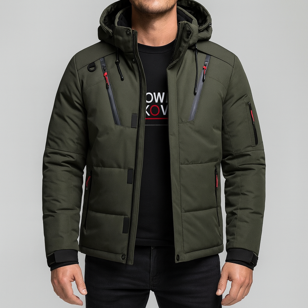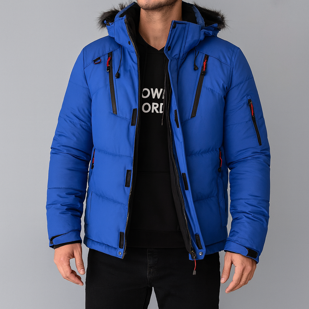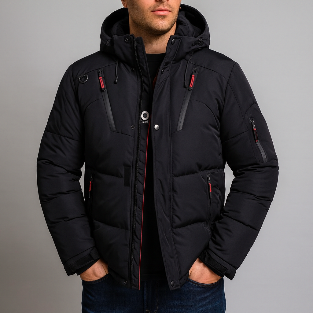 Deze gewatteerde jas heeft een recht model en is uitgerust met een ritssluiting en extra knopen aan de voorkant. De capuchon is afneembaar en het ontwerp bevat meerdere zakken die zorgen voor praktische opbergruimte. De jas is stevig afgewerkt en behoudt daardoor goed zijn vorm. Het sportieve ontwerp maakt het een tijdloos kledingstuk.