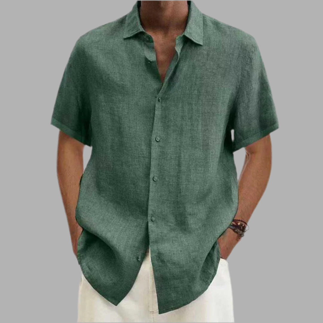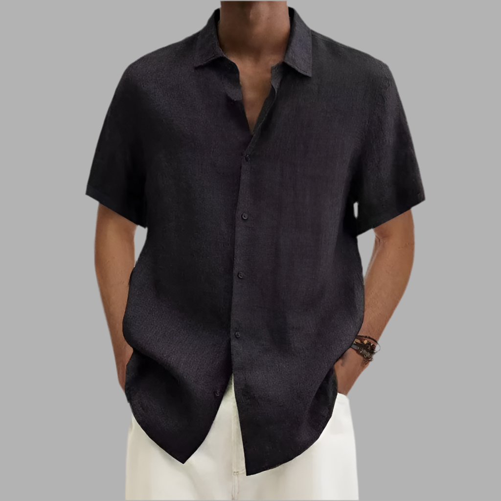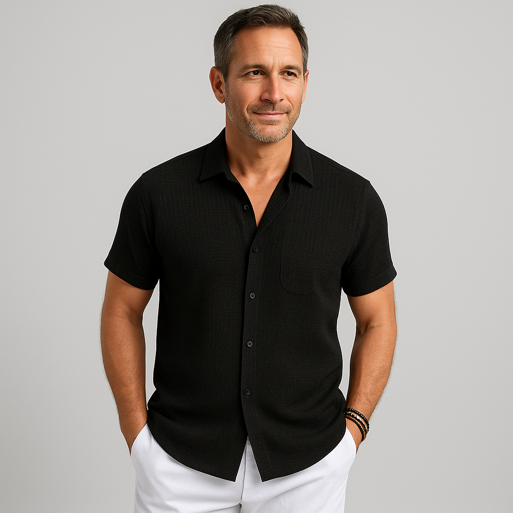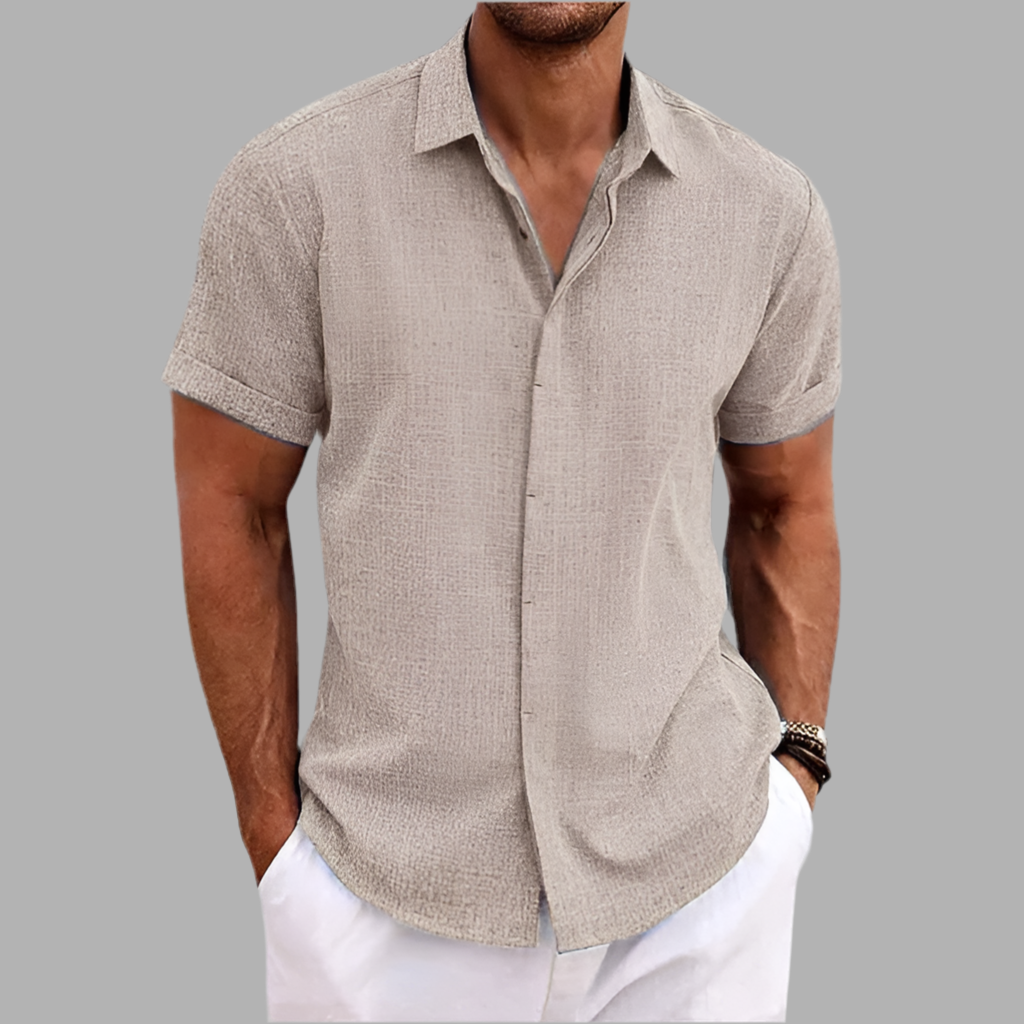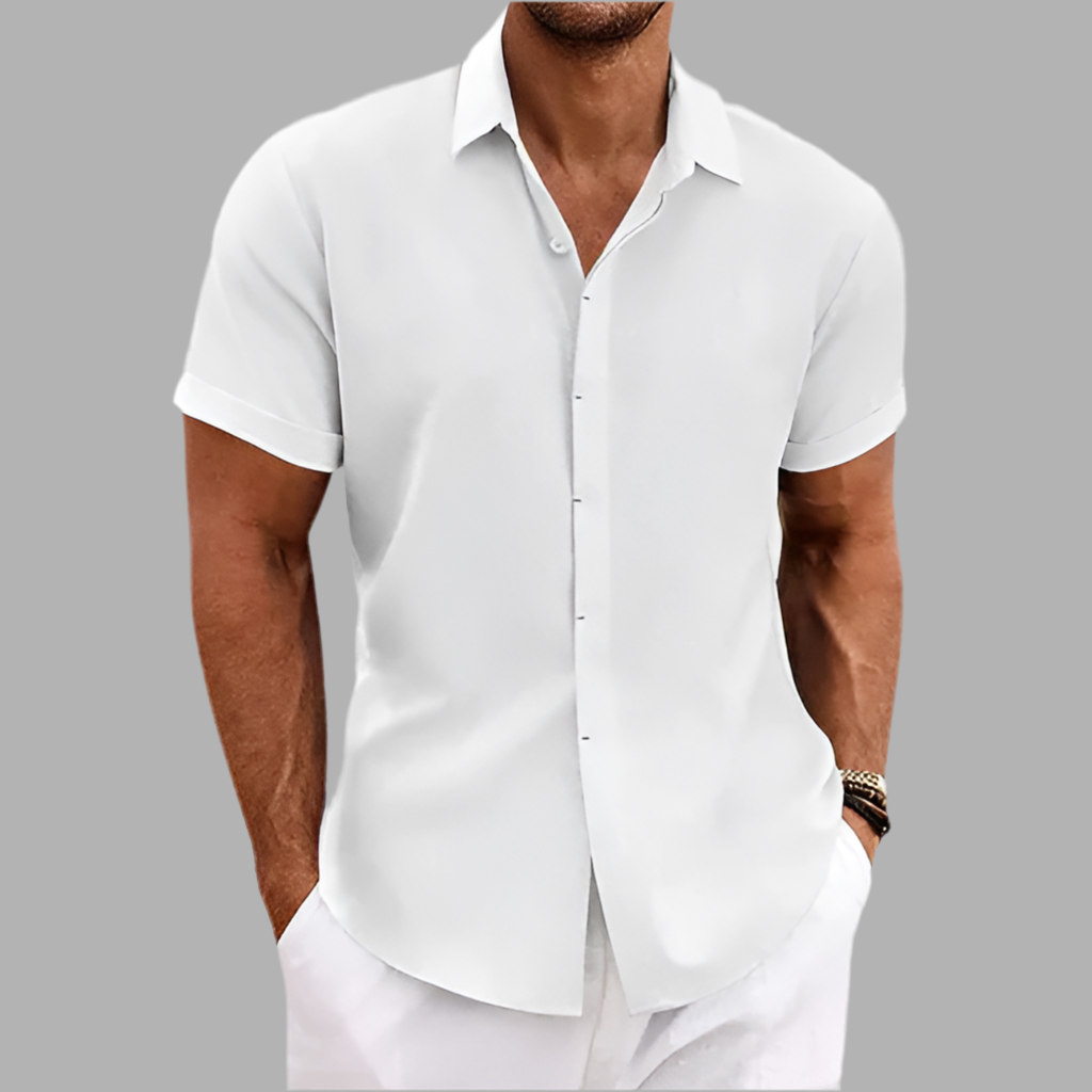 Dit is een kort mouwen overhemd voor heren, ideaal voor zomerse of casual gelegenheden. Het heeft een klassieke kraag, een knoopsluiting aan de voorkant en een rechte pasvorm. Het luchtige ontwerp maakt het comfortabel en veelzijdig te combineren, bijvoorbeeld met een korte broek of lichte chino.