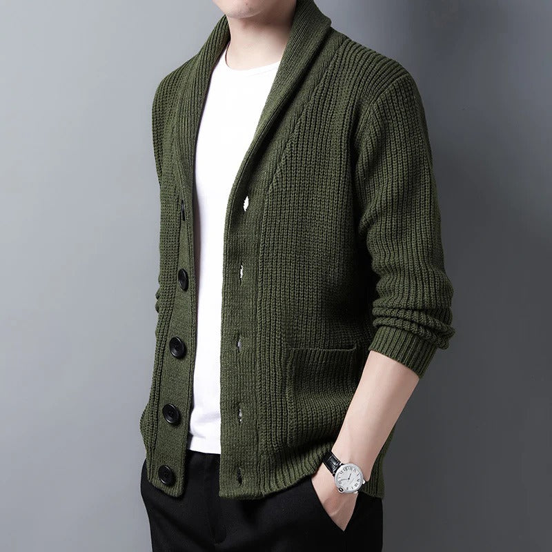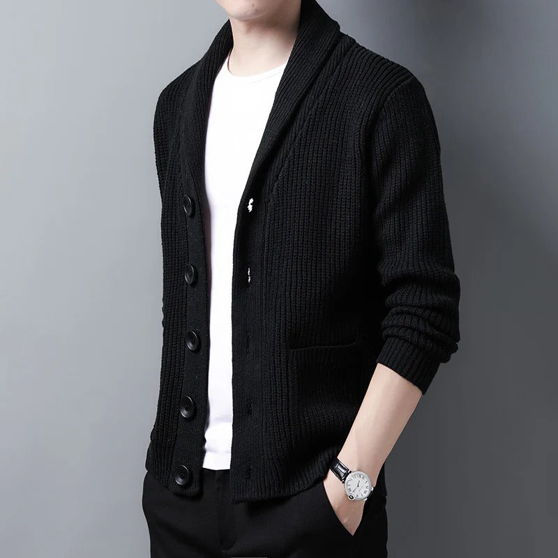 Dit vest heeft een recht model en is uitgevoerd met een knoopsluiting aan de voorkant. Het ontwerp beschikt over een sjaalkraag die zorgt voor een klassieke uitstraling. De lange mouwen en het gebreide patroon geven het vest een tijdloze en verzorgde afwerking. Dankzij de stevige stof blijft de pasvorm goed behouden.