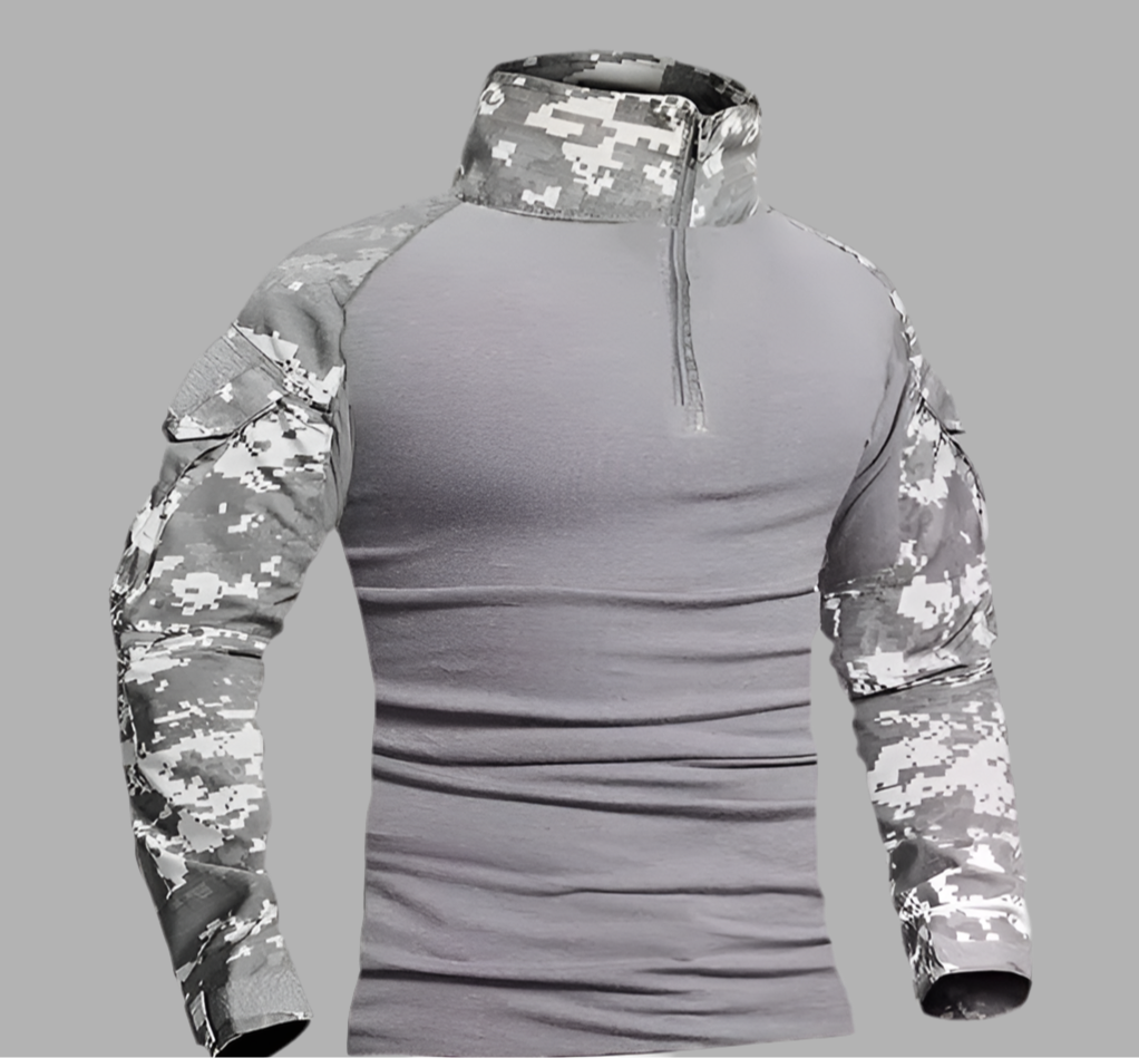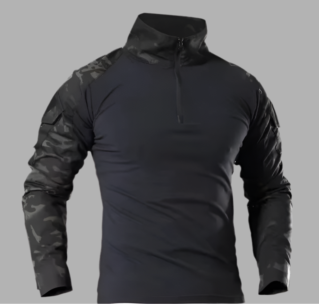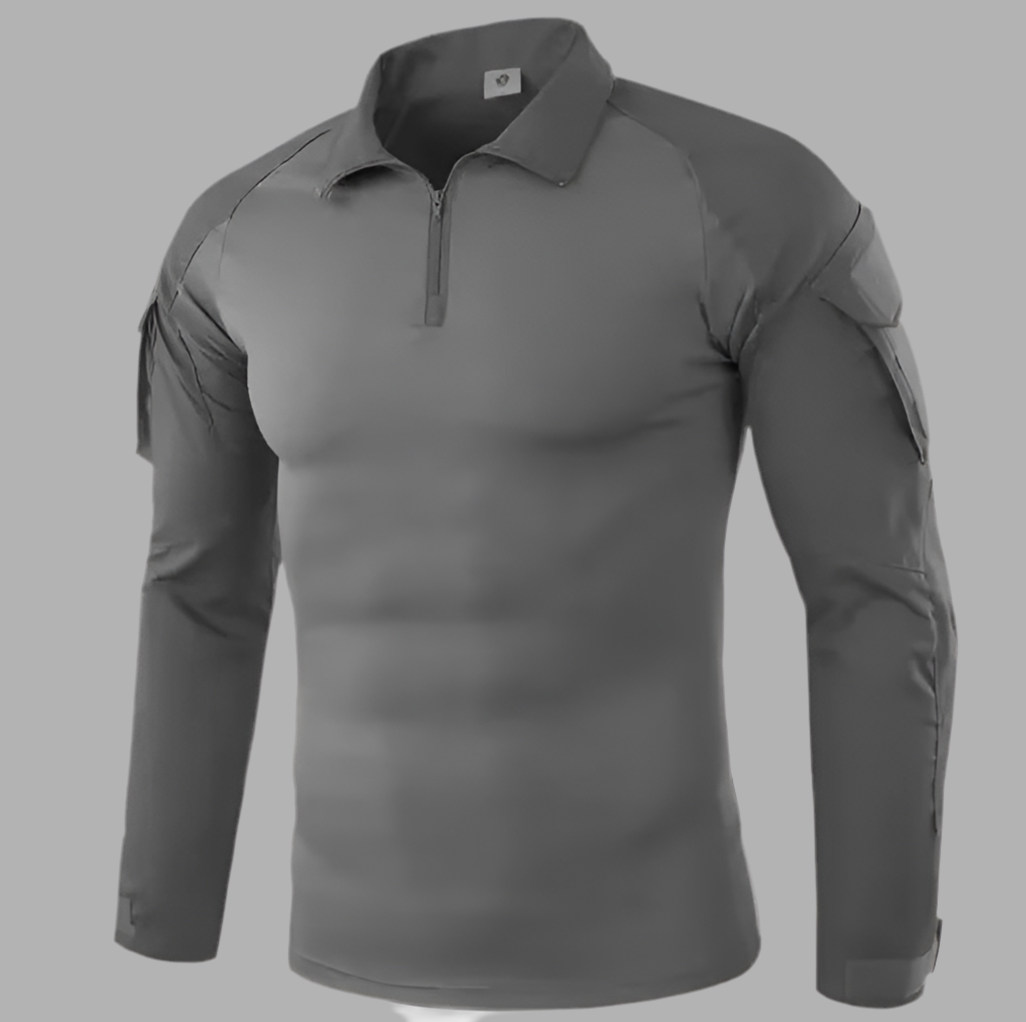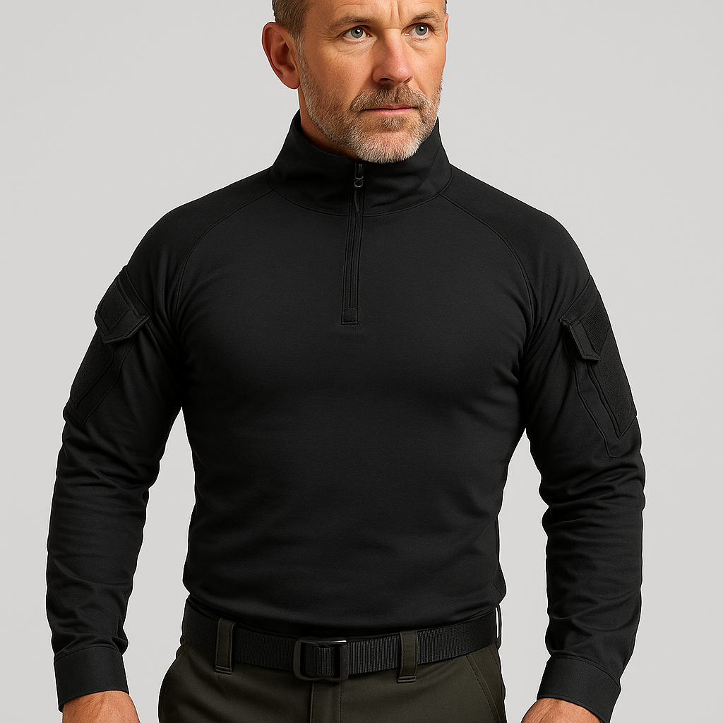 Deze herenshirt is uitgevoerd met een hoge kraag en een korte ritssluiting aan de voorkant. De lange mouwen zijn recht ingezet en sluiten netjes aan voor een comfortabele pasvorm. Het materiaal is stevig en glad afgewerkt, wat bijdraagt aan een verzorgde uitstraling. Het eenvoudige ontwerp maakt dit shirt veelzijdig combineerbaar met verschillende stijlen.