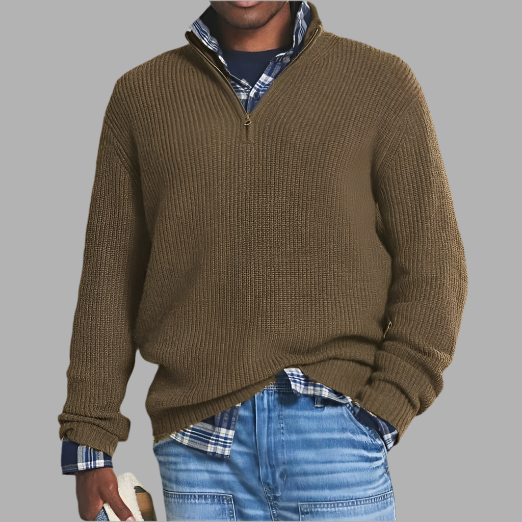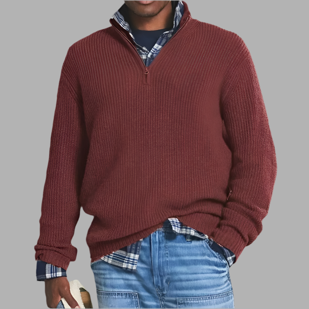 Herentrui met V-hals en grofgebreide structuur