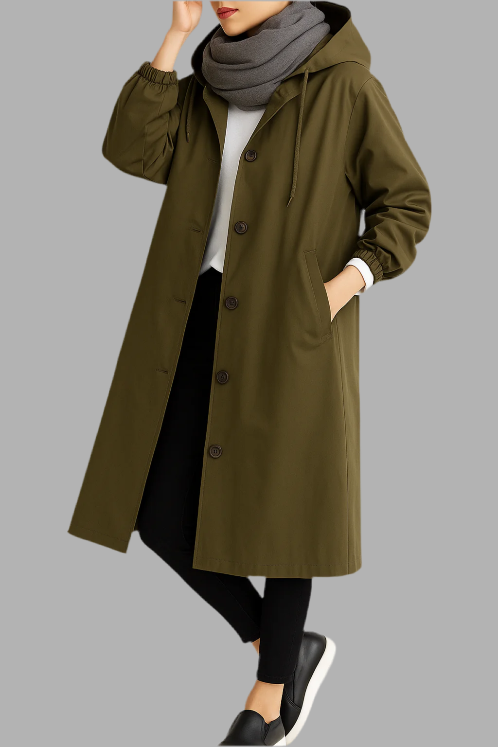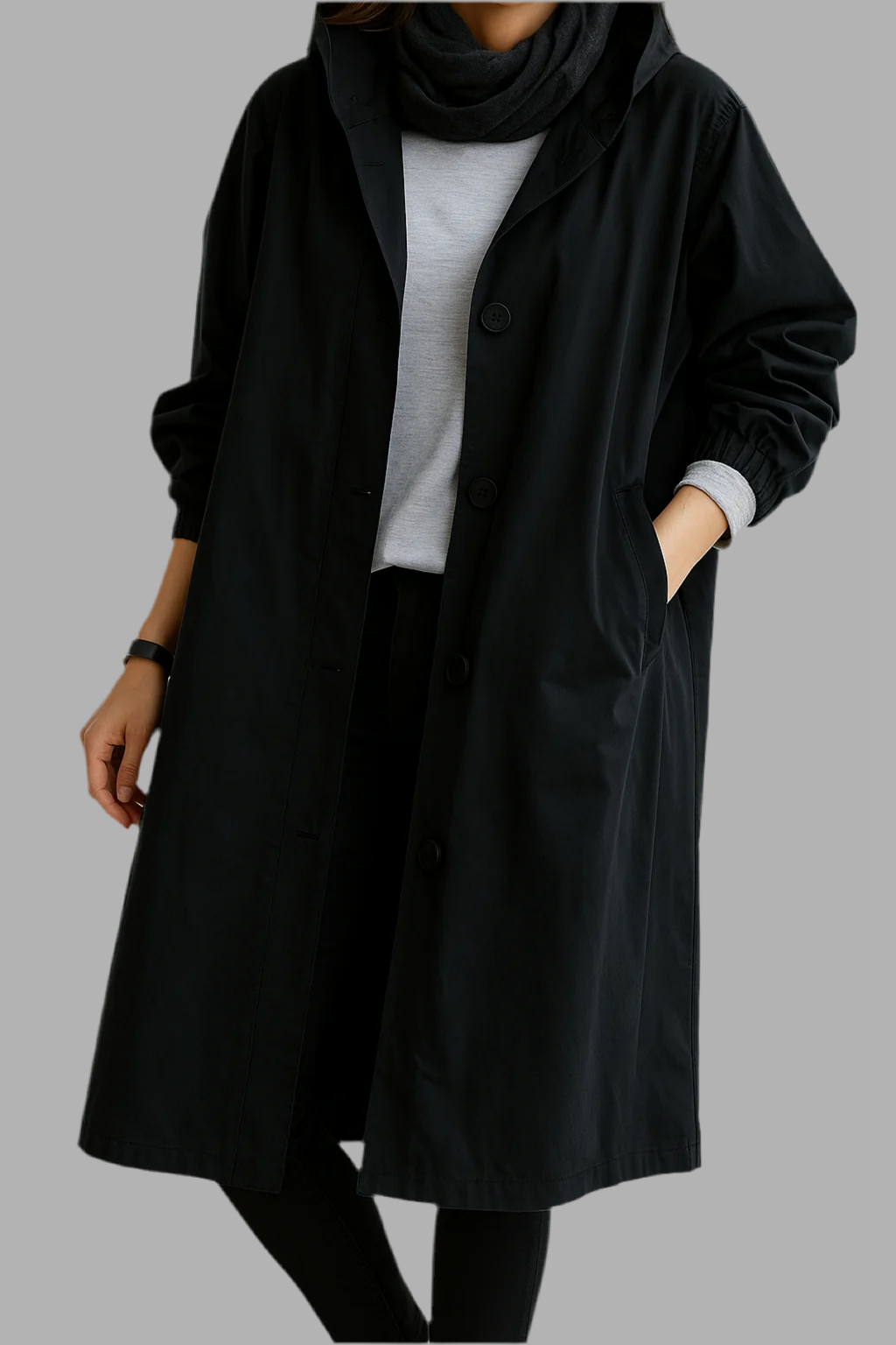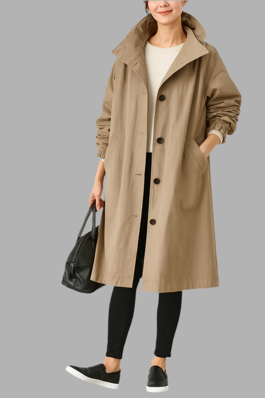 Lange damesmantel met knoopsluiting en losse pasvorm