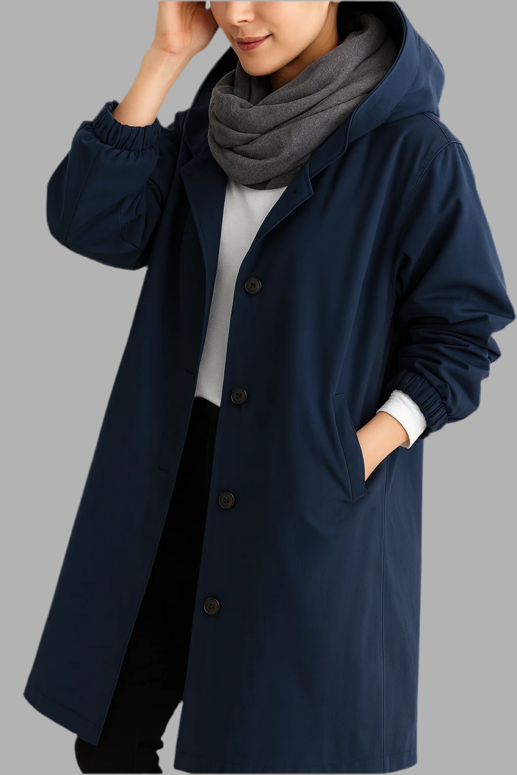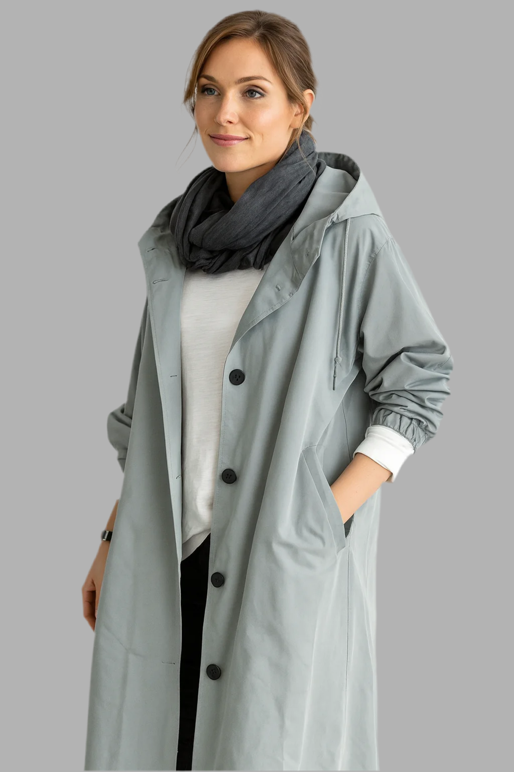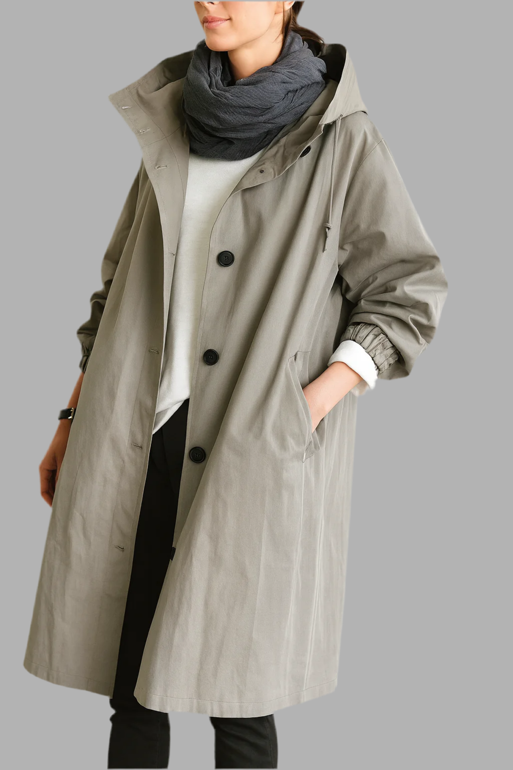 Lange damesmantel met knoopsluiting en losse pasvorm